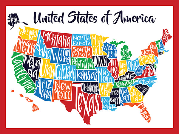 16×20″ US Map United States Map in Primary Colors Fun US Map for